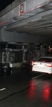 Alınan bilgiye göre, Yeşilköy Mahallesi Rauf Orbay Caddesi Florya istikametinde seyreden Raşit A. idaresindeki 41 VN 564 plakalı tır, Yeşilköy ayrımında üst geçide çarptıktan sonra devrildi.