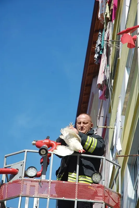 Olay yerine gelen ekipler, itfaiye aracıyla tavuğu kurtardı. Polis olayla ilgili soruşturma başlatırken, dairede o sırada kimsenin bulunmadığı belirtildi.