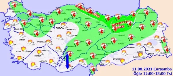 Parçalı ve çok bulutlu, sağanak ve gök gürültülü sağanak yağışlı geçeceği ediliyor. Yağışların; yer yer kuvvetli ve çok kuvvetli olması bekleniyor.