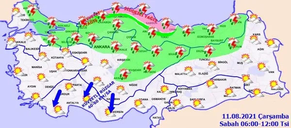 Parçalı ve çok bulutlu, yerel olmak üzere aralıklı sağanak ve gök gürültülü sağanak yağışlı geçeceği tahmin ediliyor. Yağışların; yer yer çok kuvvetli ve şiddetli olması bekleniyor.