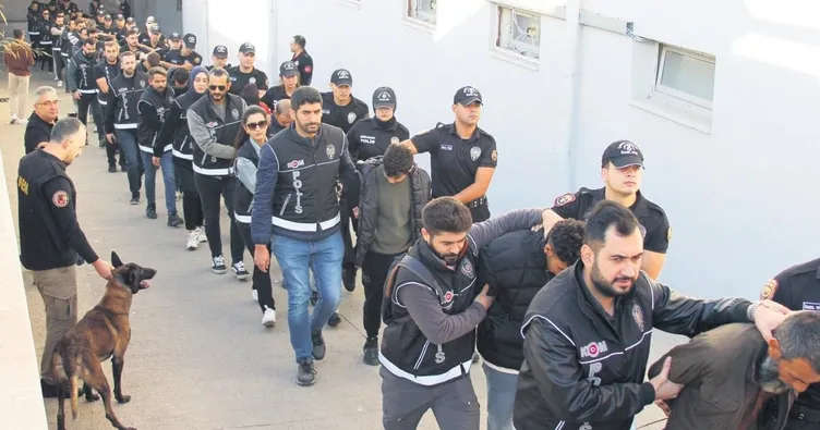 Adana İl Emniyet Müdürlüğü Kaçakçılık ve Organize Suçlarla Mücadele Şube Müdürlüğü (KOM) ekipleri, "Bayğaralar" olarak bilinen suç örgütünü yaklaşık 10 ay boyunca teknik ve fiziki takip etti. Çalışmalar sonucunda, 'suç işlemek amacıyla örgüt kurma', 'kasten öldürme', 'kasten öldürmeye teşebbüs', 'kasten yaralama', 'uyuşturucu madde ticareti yapma', 'silahlı tehdit', 'mala zarar verme', 'genel güvenliğin kasten tehlikeye sokulması', '6136 sayılı kanuna muhalefet', 'nitelikli yağma', 'haraç' ve 'özel hayatın gizliliğini ihlal' gibi suçlar olmak üzere toplam 54 ayrı olay gerçekleştirdikleri tespit edildi. 13 Ekim'de Adana merkezli İstanbul, İzmir, Ankara, Antalya, Trabzon, Kocaeli, Bitlis, Kilis ve Van'da 403 adrese 800 ekip 2 bin polis ile eşzamanlı operasyon düzenlendi. Yapılan şok baskınlarda 106 kişi gözaltına alındı. Şüphelilerin adreslerinde yapılan aramalarda 4 adet el yapımı patlayıcı, 27 adet ruhsatsız tabanca, 3 adet AK-47 tüfeği ele geçirildi. 106 şüpheli helikopter desteğiyle adliyeye sevk edildi.