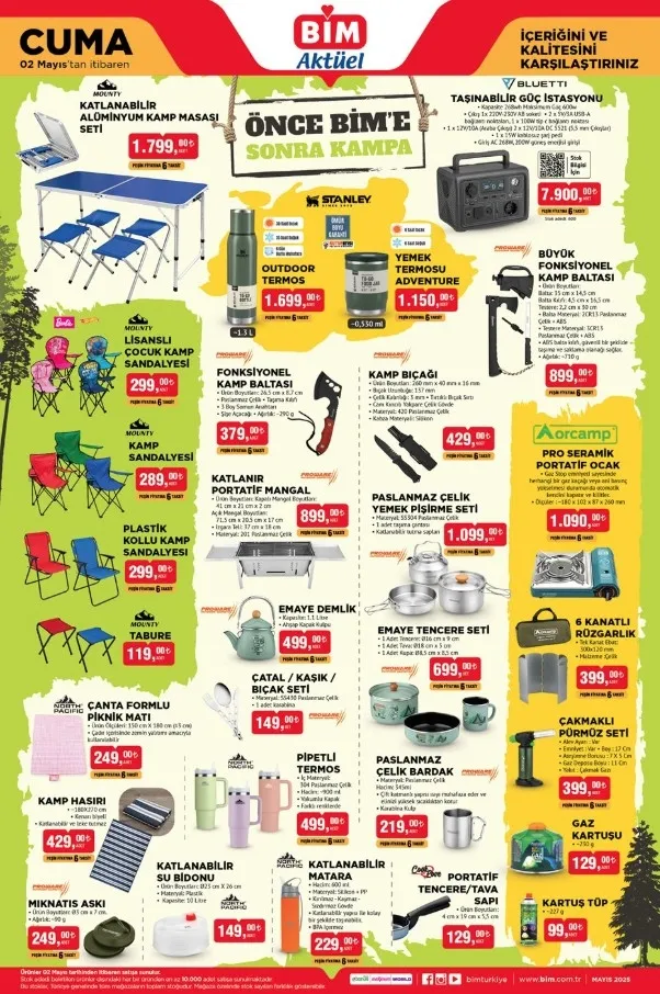 BİM aktüel indirim kataloğu 29 Nisan Salı ve 2 Mayıs Cuma fırsatlarıyla takip ediliyor. Kamp ürünlerinin yanı sıra ev tekstili, giyim, züccaciye, elektronik gibi kategorilerde de fırsatlar izleniyor. Alışveriş listeleri hazırlandı. İşte, BİM katalog fırsat ürünleri: