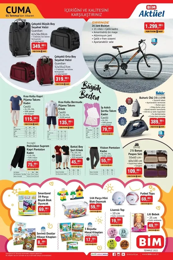 BİM aktüel ürünler kataloğu belli oldu. Yeni haftanın BİM aktüel ürünler listesi tam katalog halinde merak ediliyor. Listeye göre; bu hafta BİM aktüel ürünler kataloğunda kişisel bakım ürünleri, temizlik malzemeleri ve gıda ürünleri yer alıyor. İşte BİM aktüel ürünler kataloğu 1 Temmuz 2022 Cuma indirimli liste