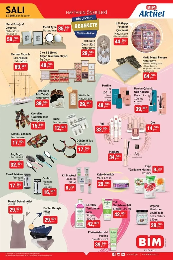 Salı gününe özel BİM aktüel ürünleri belli oldu. Her hafta farklı ürünleri indirime sokan markette bu hafta ahşap Takı Düzenleyici, küpe, bandana, fotoğraf çerçevesi, parfün, maskara, cımbız yer alıyor. İşte BİM aktüel indirimli ürünler kataloğu tam liste 13 Eylül 2022