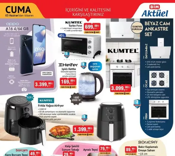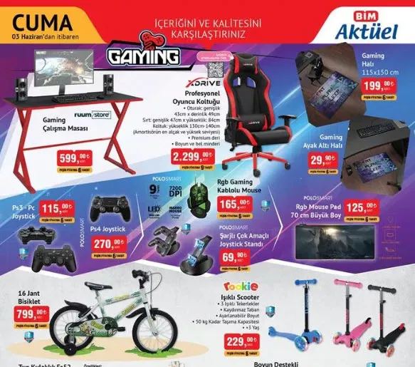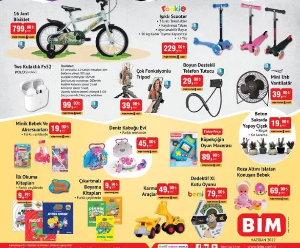 3 Haziran Cuma BİM aktüel ürünler listesi yayınlandı. Cuma günleri raflarda yerini alan indirimli ürünler Cuma günleri de tüketicilerin beğenisine sunuluyor. Bu hafta BİM aktüel ürünlerde cep telefonu, ütü, çalışma masası, profesyonel oyuncu koltuğu, ışıklı scooter, tws kulaklık, mini USB vantilatör yer alıyor. İşte BİM 3 Haziran 2022 Cuma aktüel ürünler tam listesi