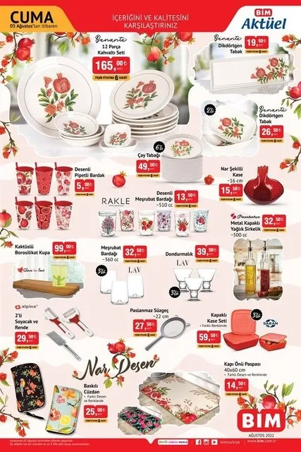 BİM aktüel ürünler bu hafta da birçok fırsatı tüketici ile buluşturuyor. Cuma günü gelmeden indirimli tam liste üzerinde alışveriş listesi yapanlar ürünlerin raflara gelmesini bekliyor. BİM aktüel ürünler kataloğu içinde mutfak araç gereçleri arasında yemek takımları ve tencere setleri dikkat çekerken düzenleyici ürünler de oldukça çok tercih ediliyor. İşte, BİM aktüel 5 Ağustos 2022…