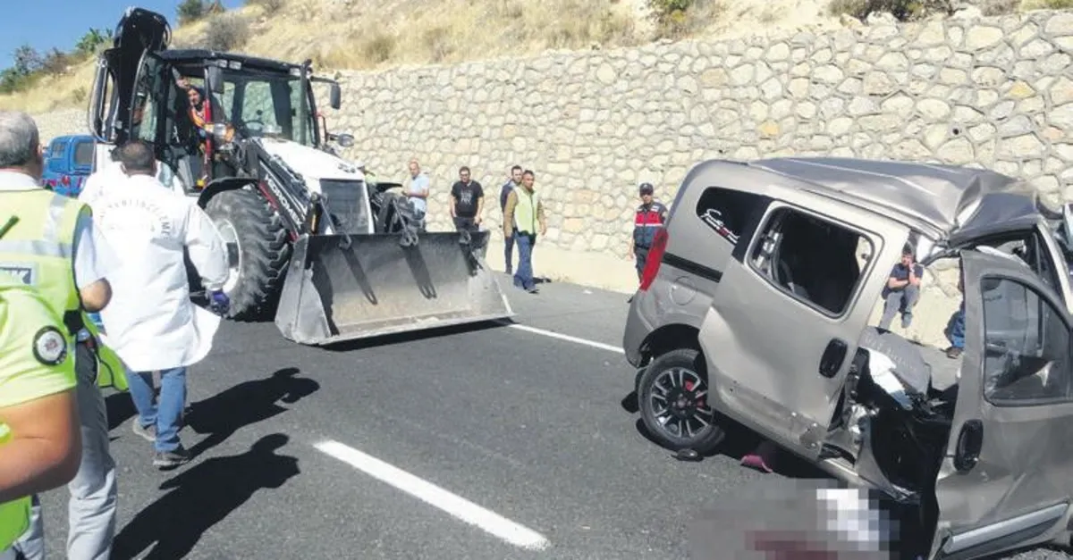 Malatya'nın Akçadağ ilçesi yakınlarında, dün sabah saat 08.00 sıralarında kontrolden çıkan Murat Yavuz'un (59) kullandığı hafif ticari araç, karşı yönden gelen Hüseyin D.'nin kullandığı TIR ile kafa kafaya çarptı. Sürücü Murat Yavuz ile yanında bulunan eşi Leyla (58), oğlu Tarık (36) gelini Fatma (34), torunları Batın Kaan (14) ve Beril Su Yavuz (7) yaşamlarını yitirdi. Malatya'da yaşayan ailenin, Kuşadası'ndan tatilden döndükleri belirlendi.