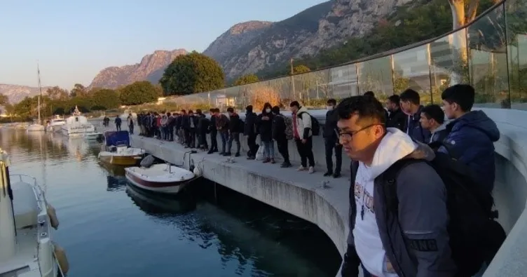 Düzensiz göçmenler işlemlerinin ardından Muğla İl Göç İdaresi'ne gönderildi.