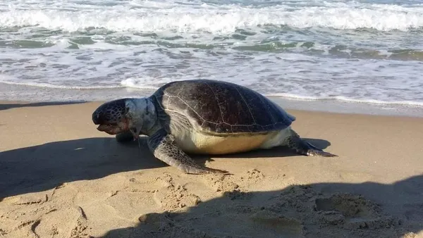 Aydın'ın Kuşadası sahilinde bir iribaş kaplumbağa karaya vurdu. Yapılan incelemelerde her iki kaplumbağanın insan hatasından dolayı öldükleri tespit edildi.