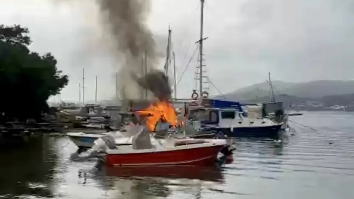 Bodrum'da Torba Mahallesinde 7 metre uzunluğundaki lüks bir balıkçı teknesi, henüz belirlenemeyen bir nedenle alev aldı. Yangın ihbarı üzerine olay yerine gelen itfaiye ekipleri, teknede çıkan yangını söndürmek için yoğun çaba harcadı.