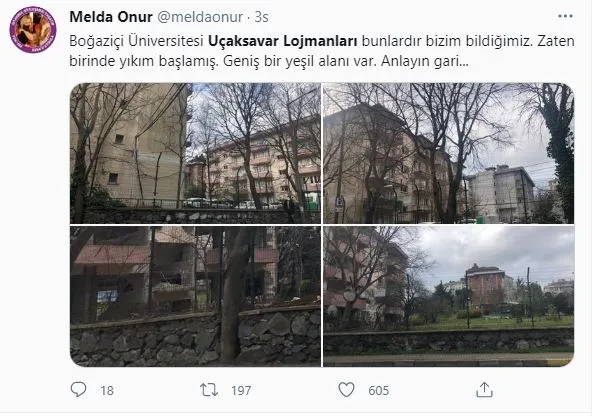 "Bir kamu üniversitesi olan üniversitemizin ve bu çatı altında emek veren tüm çalışma arkadaşlarımızın sağlam, modern ve konforlu lojmanlarda yaşayabilmesini sağlamak Boğaziçi Üniversitesi Yönetimi olarak öncelikli hedeflerimizdendir. Bu kapsamdaki destek çağrımıza tüm yoğunluklarına rağmen ivedilikle ve tamamen çözüm odaklı şekilde cevap vermiş olan Çevre ve Şehircilik Bakanımız Sayın Murat Kurum ve İstanbul Valimiz Sayın Ali Yerlikaya'ya bir kez daha şükranlarımızı sunarız."