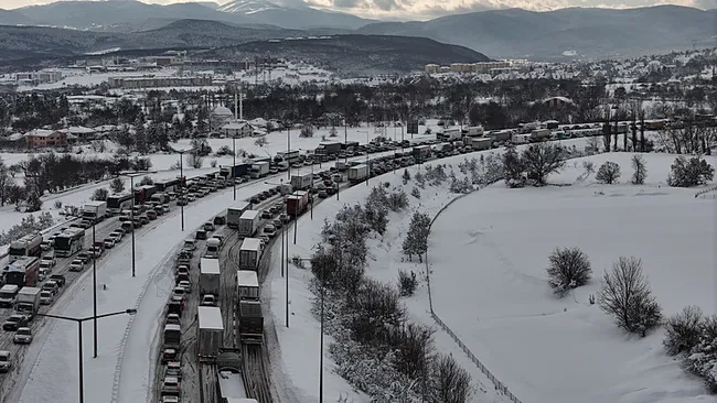 TEM Otoyolu'nun kilit noktalarından biri olan Bolu geçişinde trafik durdu. Bölgede etkisini sürdüren kar yağışı ve buzlanma nedeniyle ağır tonajlı araçlar rampalarda ilerlemekte güçlük çekti. Kontrolden çıkarak makaslayan tırlar sebebiyle otoyolun hem Ankara hem de İstanbul istikameti ulaşıma kapandı.