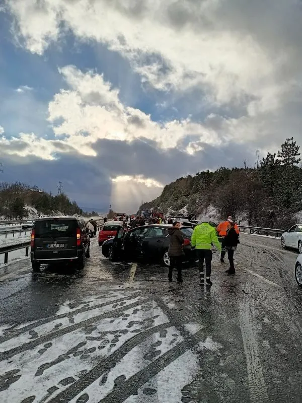 Kaza, saat 16.30 sıralarında, TEM yolunun Yeniköy mevkisinde meydana geldi. Kar yağışı nedeniyle kayganlaşan yolda 12 araç çarpıştı. Zincirleme kazada 2 kişi yaralanırken, 112 Acil Çağrı Merkezi'ne haber verildi.