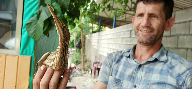 Mermerlerin üzerindeki kuşu alan Loyan, yaptığı araştırmada, kuşun 'küçük balaban' adında nesli tükenme riskiyle karşı karşıya olan bir balıkçı türü olduğunu öğrendi. Yetkililere haber veren Ramazan Loyan, Mustafakemalpaşa Hayvan Barınağı'na kuşu teslim etti.