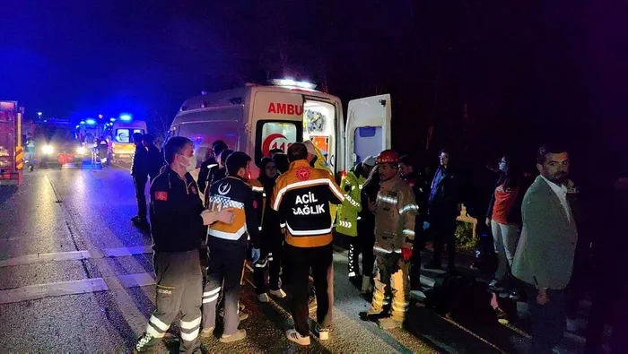 Şu ana kadarki ilk tespitlerimde sürücü ve 2 öğrenci maalesef hayatlarını kaybetti. Yaralılara müdahale yapıldı, ambulanslarla hastanelere sevkleri yapıldı. Hastaneye gönderilen öğrencilerin ve hastaların genel durumu iyi görülüyor. Burada enkazı kaldırma çalışmalarımız devam ediyor. AFAD ekipleri İl Jandarma, emniyet ekiplerimiz sağlık ekiplerimiz tamamı burada. Büyük geçmiş olsun. Ölenlerin ailelerine başsağlığı diliyorum. Yaralı çocuklarımıza acil şifalar diliyorum" dedi.