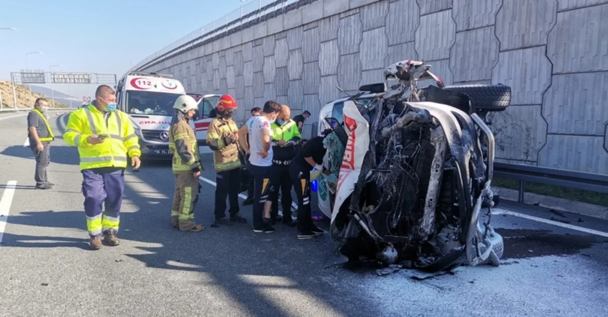 Hasta nakil hizmeti veren özel bir firmaya ait ambulans, İzmir-İstanbul Otobanı'nda sürücüsünün direksiyon hakimiyetini kaybetmesi sonucu Gemlik Kavşağı yakınlarında yaklaşık 6 metre yükseklikten yola düştü.