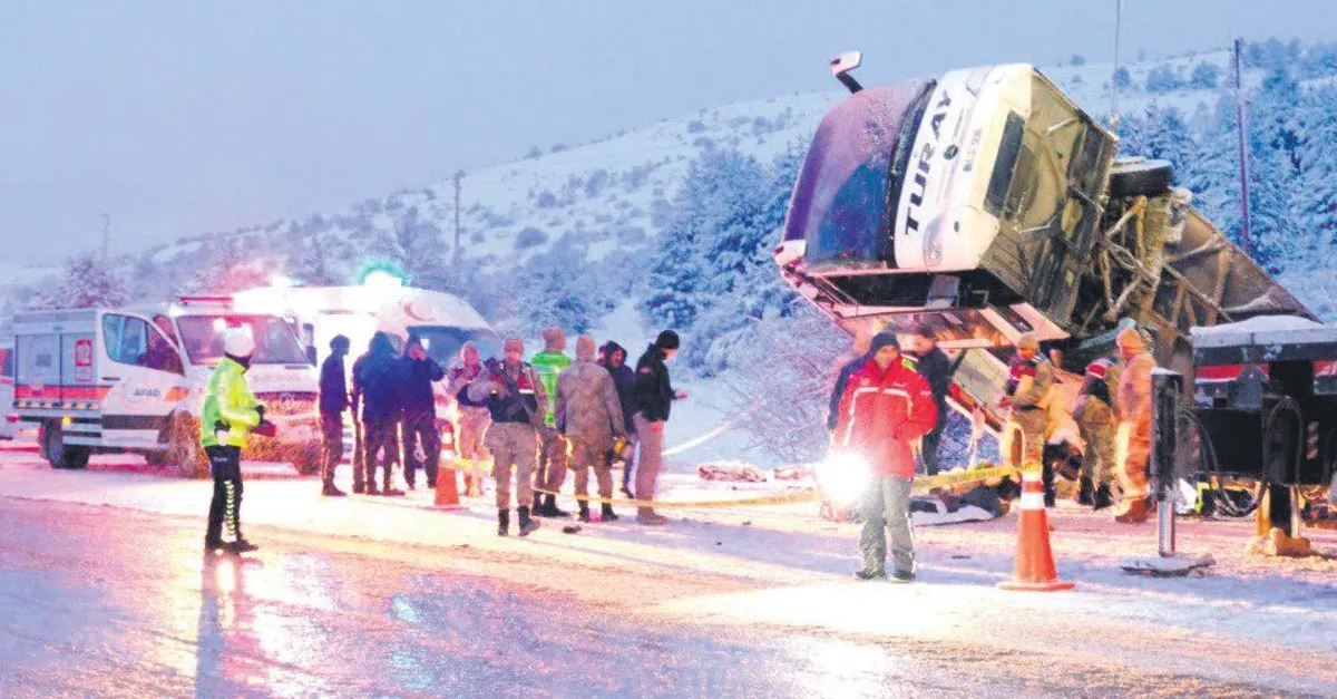 Trabzon'a giden Fatih Özkan'ın kullandığı yolcu otobüsü, kar ve buzlanma nedeniyle kontrolden çıkarak şarampole devrildi. Yolculardan Nazlı Ekinci (51) ve Yüksel Zorlu'nun (50) öldüğü kazada, 21 kişi de yaralandı.