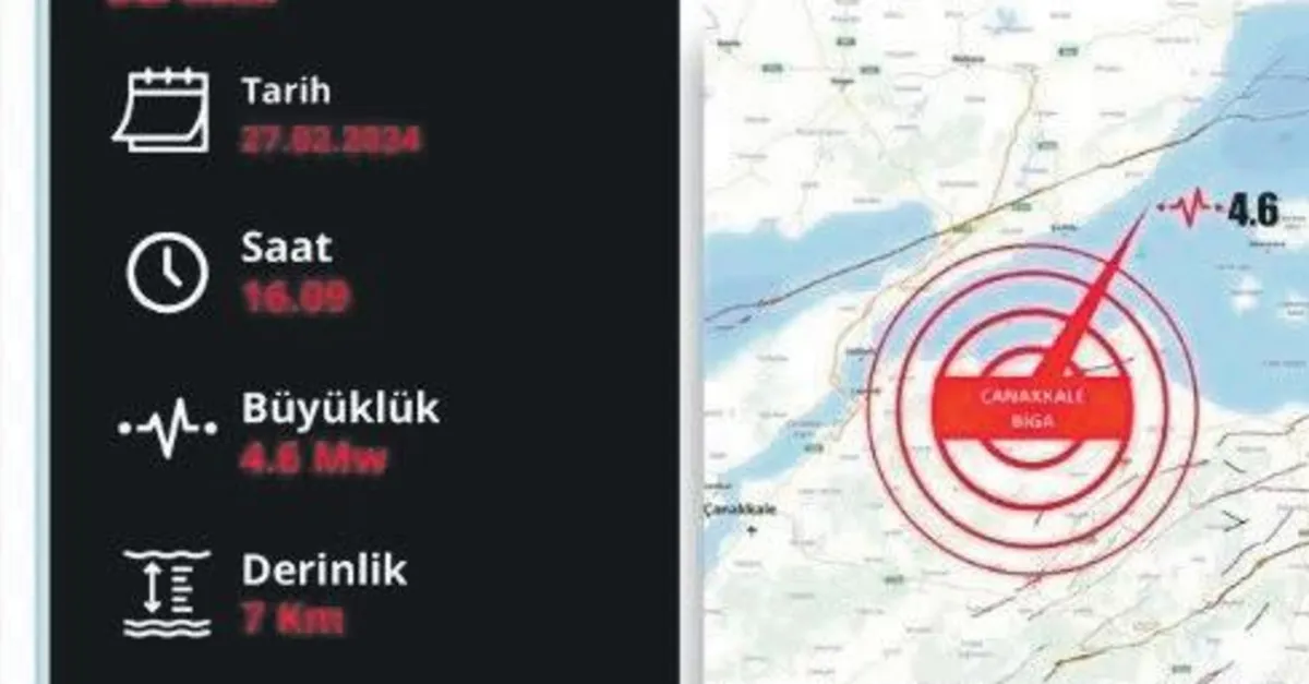 Biga ilçesinde saat 16.09'da 4.6 büyüklüğünde deprem meydana geldi. Afet ve Acil Durum Yönetimi (AFAD) Başkanlığı'nın internet sitesinde yer alan bilgiye göre, merkez üssü Biga ilçesi olan 4.6 büyüklüğünde sarsıntı kaydedildi. Depremin, 7 kilometre derinlikte meydana geldiği belirlendi. İçişleri Bakanı Ali Yerlikaya Çanakkale'de meydana gelen depreme ilişkin açıklamada bulundu. Yerlikaya şu ifadelere yer verdi: Çanakkale Biga'da, 4.6 büyüklüğünde meydana gelen depremde AFAD ve ilgili kurumlarımızın tüm ekipleri saha taramalarına başlamıştır. An itibarıyla olumsuz bir durum yoktur. Gelişmeleri takip ediyoruz. Depremden etkilenen vatandaşlarımıza geçmiş olsun dileklerimi sunuyorum. Allah ülkemizi ve milletimizi afetlerden korusun.