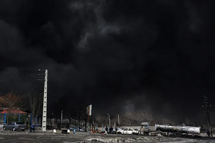 Tahran'ın kuzeybatısında bulunan ve yangının sürdüğü petrol tesisinin dumanları tüm şehrin üzerine yayılmaya devam ediyor.