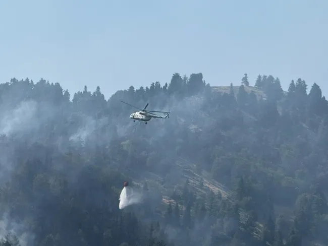 Ekipler havadan ve karadan müdahaleyle yangını kontrol altına almaya çalışıyor.