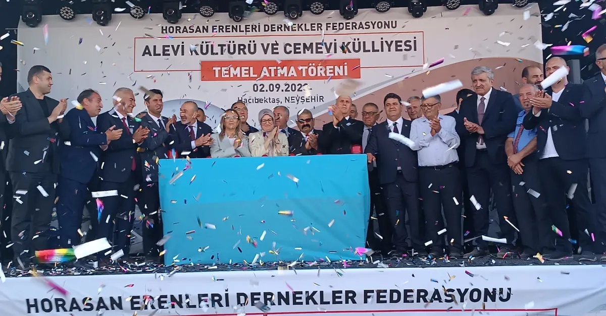 Açılış konuşmasının ardından Horasan Erenleri Federasyonu Yönetim Kurulu Başkanı Mehmet Şahin gülbank duası yaptı. Düzenlenen temel atma töreninde, yapılan açılış konuşmaların akabininde protokol üyelerinin butonlara basmasıyla Cem Evi Külliyesi'nin temeli atma töreni icra edildi.
