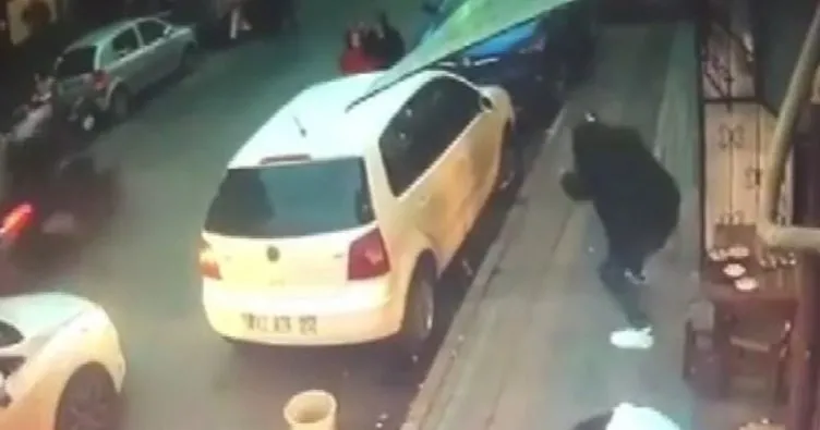 Saldırıya uğrayan kişiler, ateş açıldığı sırada dahi bardakları bırakmazken, saldırı sonrası çaylarını yudumlamaya devam etti. O anlar ise bir iş yerinin güvenlik kamerasına yansıdı.