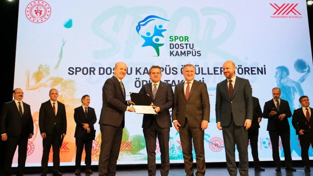Törene Gençlik ve Spor Bakanı Dr. Osman Aşkın Bak, YÖK Başkanı Prof. Dr. Erol Özvar, İlim Yayma Vakfı Mütevelli Heyeti Başkanı Necmeddin Bilal Erdoğan, rektörler ve çok sayıda davetli katıldı. "Spor Dostu Kampüs" unvanı almaya hak kazanan üniversitelerin rektör ve rektör vekillerine Gençlik ve Spor Bakanı Dr. Osman Aşkın Bak, İlim Yayma Vakfı Mütevelli Heyeti Başkanı Necmeddin Bilal Erdoğan ve YÖK Başkanı Prof. Dr. Erol Özvar tarafından belgeleri takdim edildi.