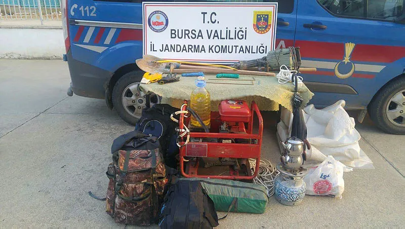 Jeneratör, kazma, hilti ve küreğe el konulurken, 4 kişi gözaltına alındı. B.K. ve M.G.'nin daha evvel de aynı suçtan kaydı olduğu ortaya çıktı.
