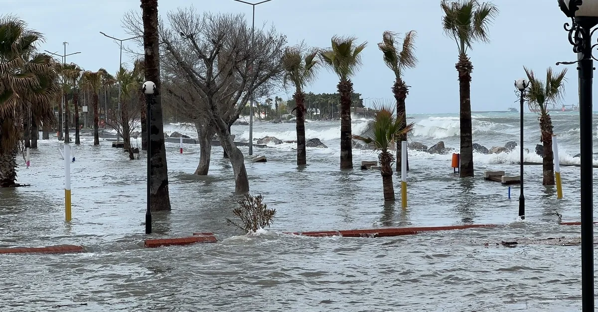 Meteorolojinin uyardığı kuvvetli rüzgar ve fırtına denizde devasa dalgalar oluşturdu. Sahil şeridini su basması ve dalgalarla birlikte su altında kalan bir kafede elektrik kontağından yangın çıktı. İtfaiye ekipleri yangına müdahale ederek söndürdü. Yangında iş yerinin bir bölümü kullanılamaz hale geldi.