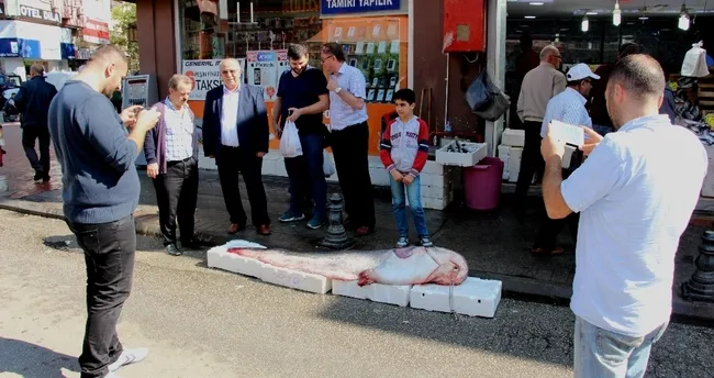 Devasa yayın balığı, sabah saatlerinde Kızılırmak Deltası'nda bir gölde balıkçılar tarafında yakalandı. Daha sonra balıkçı dükkanına getirilen yayın balığı tezgaha sığmadığı için yoldaki balık kutularının üstüne koyuldu. 183 santim uzunluğunda, 152 kilo ağırlığındaki yayın balığı, yoldan geçen vatandaşların oldukça ilgisini çekti. Daha önce canlı olarak bu büyüklükte bir yayın balığı görmediğini söyleyen vatandaşlar şaşkınlıklarını gizleyemedi. Bazı vatandaşlar ise cep telefonlarına sarılarak yayın balığının fotoğrafını çekti.