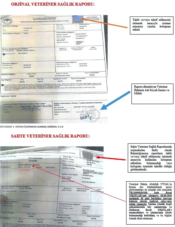 Sahte küpelerde orijinal küpede olması gereken Bakanlık logosu ile küpe numarası ve barkod bulunmadığı öğrenildi. Sahte küpelerin maddi menfaat karşılığında sanık veteriner hekimlerce hazırlanarak hayvanlara takıldığı bildirildi. Hayvan sağlığı ve hareketlerinin kontrolü açısından son derece önemli olan küpeleme işlemlerinin yanı sıra sağlık raporlarının da usulüne uygun düzenlenmediği ve kayıt dışı hayvanların sanki denetim altındaymış gibi sahte evraklarla Türkiye'nin birçok bölgesine sevk edildiği vurgulandı. Sanıkların bu şekilde halk sağlığının hiçe sayarak hayvansal hastalıkların tüketicilere yayılmasına yol açtıkları kaydedildi.