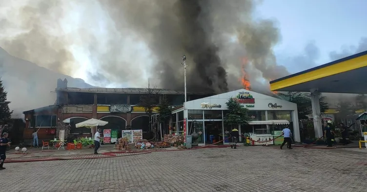 Seydişehir-Antalya karayolunun 25'inci kilometresindeki Tınaztepe mevkiinde bulunan bir dinlenme tesisinin market bölümünde sabah saatlerinde başlayan yangın kısa sürede büyüdü.