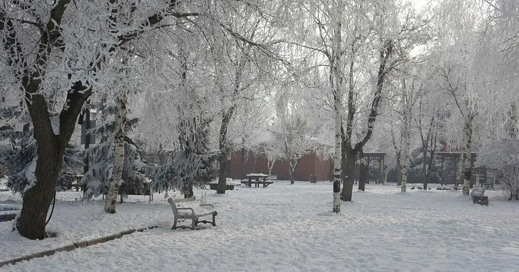 Termometrelerin eksi 17 dereceyi gösterdiği Kars'ta dereler ve göletler buzla kaplandı. Bitki ve ağaçların kırağı tuttuğu kentte, işyerlerinin camları buz tuttu.