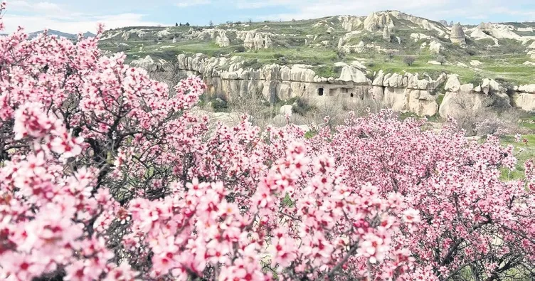 Nevşehir'de yer alan Kapadokya bölgesi ise baharın gelişiyle renk cümbüşüne döndü. UNESCO Dünya Doğal ve Kültürel Miras Listesi'nde yer alan bölge, peribacaları ile eşsiz bir manzara oluşturdu. Pembe ve beyaz çiçekler açan badem ve kayısı ağaçları, Kapadokya'nın doğal dokusuna ayrı bir güzellik kattı.