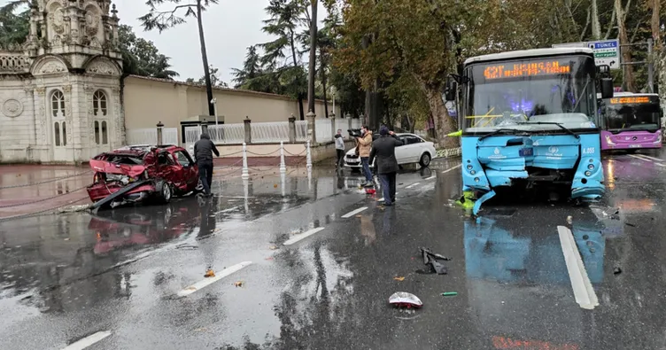 Kaza, Dolmabahçe Caddesi Saltanat Kapısı önünde saat 9.30 sıralarında meydana geldi. Edinilen bilgiye göre, Beşiktaş'tan Karaköy istikametine giden Bekir B.'nin kullandığı otomobil, henüz bilinmeyen bir nedenle otomobil kayarak karşı yönden gelen Özel Halk Otobüsüne çarptı. çarpmanın etkisiyle otomobil içinde sıkışan sürücü için olay yerine itfaiye ve sağlık ekibi sevk edildi. Kısa sürede olay yerine gelen itfaiye ekibi otomobil içinde sıkışan sürücüyü çıkartarak sağlık ekiplerine teslim etti. Yaralı sürücü ambulansla Prof. Dr. Cemil Taşçıoğlu Şehir Hastanesi'ne kaldırıldı.