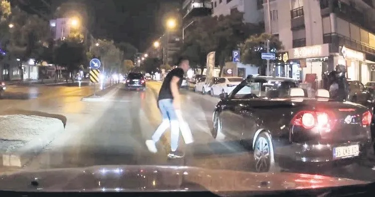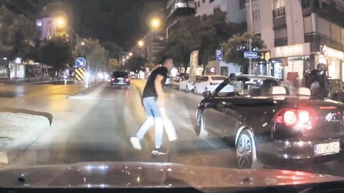 İzmir'de otomobil sürücüsü E.M. (22), trafikte tartıştığı kişilerin üzerine döner bıçağıyla yürüdü. O anlar ise cep telefonu ve otomobilin araç kamerasına saniye saniye yansıdı. Olay, önceki gece saat 21.30 sıralarında Karşıyaka ilçesi Girne Caddesi'nde meydana geldi. İddiaya göre, trafikte seyir halinde olan 35 CKG 604 plakalı spor otomobilin sürücüsü E.M., aynı yönde ilerleyen bir motosiklet sürücüsü ile tartıştı. Tartışma sırasında otomobil sürücüsü, aracında kılıf ile muhafaza ettiği döner bıçağını çıkartarak tartıştığı kişilerin üzerine yürüdü. Olayı gören çevredekiler araya girerken, motosiklet sürücüsünün bölgeden ayrılması sonrasında kavga sona erdi. E.M., olaydan kısa süre sonra Karşıyaka İlçe Emniyet Müdürlüğü ekipleri tarafından yakalanarak gözaltına alındı. Öte yandan spor otomobil sürücüsünün motosikletli ile tartıştığı anlar bir aracın güvenlik kamerasına yansırken, ayrıca bir vatandaş tarafından cep telefonu kamerasıyla da kaydedildi.