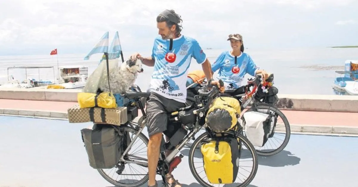 Arjantin'den bisikletle dünya turuna çıkan ikili, Konya'nın Beyşehir ilçesine geldi. Gıda mühendisi Leonardo Santi (34) ile fotoğrafçı Carla Vales, 2019'da Arjantin'den bisikletleriyle dünya turuna çıktı. Kendilerine yol arkadaşı olan köpekleri Piri ile kilometrelerce pedal basarak seyahatlerini sürdüren ikilinin Türkiye'deki durağı Beyşehir ilçesi oldu. 3 yıldır çeşitli ülkeleri gördüklerini, bu yıl gezilerini sonlandırmayı planladıklarını aktaran Santi, "Türkiye gezisi sırasında ilginç anlar yaşadık. Türk misafirperverliğine hayran kaldık. Olağandışı bir durum olmazsa günde 8 saat pedal çevirip 50 kilometre bisiklet sürüyoruz" dedi. Santi, sonraki duraklarının Salda Gölü ve Pamukkale olduğunu kaydetti. AA