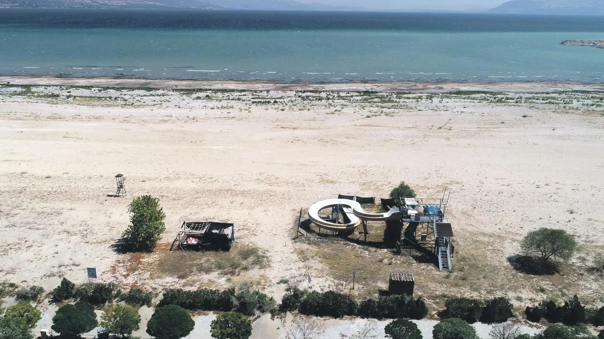 Sahilde bulunan su kaydırağı ve Isparta'da bulunan Dağ Komando Okulu'nun eğitim alanındaki suya atlama kulesi de aynı nedenden dolayı artık kullanım dışında bulunuyor. Türkiye Tabiatını Koruma Derneği bilim danışmanı Dr. Erol Kesici, göl yüzeyinin 1960 öncesinde 518 kilometrekare iken 1990'da 481 kilometrekare, 1997'de 479 kilometrekare, 2024 yılında da 426 kilometrekareye kadar düştüğünü, azalmanın hızla devam ettiğini söyledi. Gölün ortalama derinliği 1950'de 16 metre, 1960'ta 14.5 metre, 1970 sonrası 12 metre, 1980-1990 arasında 11.3 metreyken, 2000 sonrası 8.8 metreye gerilediğini dile getiren Dr. Kesici, "2017'de 6.5 metre, 2020'de 5.3 metre, 2022'de 4.2 metre, 2023'te 4.1 metreye düştü. Bu değerler ekim başı değerleri. 2024 yılı temmuz ayında ise yaklaşık 3.2 metre ortalama derinliğe kadar düştü" dedi. Dr. Kesici, "Su seviyesinin son 5-6 yıl içerisinde en az 7 metre azaldığını gösteren izler. Kuleden atlama eğitimleri olduğu belirtilmekte. Ama şu durumda suyun çekilmesiyle birçok zorlukla da karşılaşılmakta. Şu anda artık atlamak mümkün değil, çünkü su seviyesi alabildiğince az. Kayaların üzerindeki izler de suyun ne kadar çekildiğini gösteriyor" ifadelerini kullandı. DHA