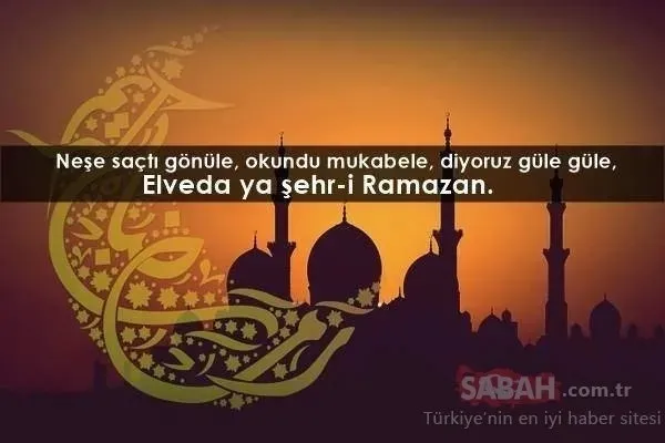 On bir ayın sultanı Ramazan'ın son gününe geldi çattı. Ramazan'ın son günü olarak idrak edilen arefede oruç ibadeti son kez yerine getirilecek. Bu noktada bin aydan daha hayırlı olarak kabul gören Ramazan ayına veda etme üzüntüsü içerisinde olan Müslümanlar, Elveda Ya Şehri Ramazan mesajları ve sözleri ile Ramazan ayını uğurluyor. Kısa, uzun, en güzel, anlamlı, dualı, resimli Ramazan'a veda mesajları ve sözleri sosyal medya aracılığıyla paylaşılmaya başlandı. İşte Elveda Ya Şehri Ramazan mesajları 2024 ile Ramazana elveda mesajları sabah.comtr'de…