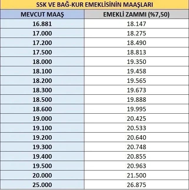 | Bağ-Kur Emeklileri (4B) | 7,5 | 3 aylık zam oranı |