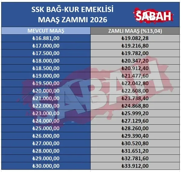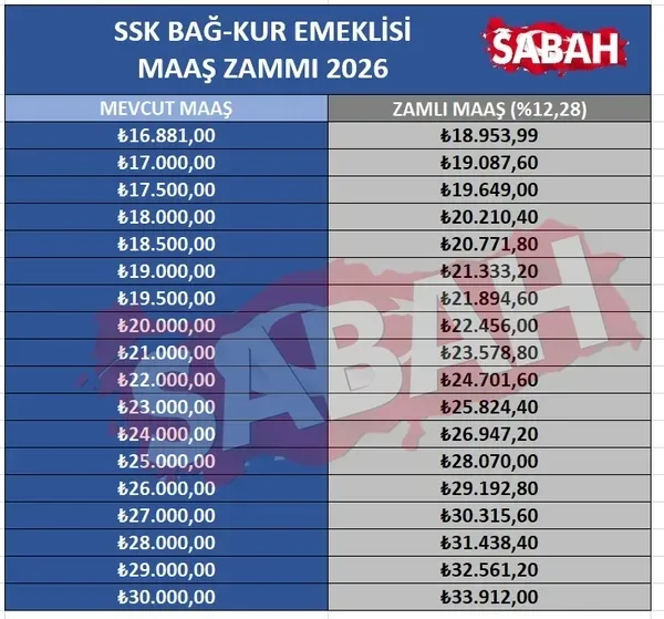 SSK VE BAĞ-KUR emeklilerinin maaşlarına zam, TÜİK tarafından açıklanan 6 aylık enflasyon verisiyle belli oluyor. Temmuz ayında SSK ve BAĞ-KUR emeklileri Ocak-Haziran enflasyon oranı kadar, yani yüzde 16,67 oranında bir zam aldı. En düşük emekli aylığı ise 16.811 TL'ye yükseltildi.