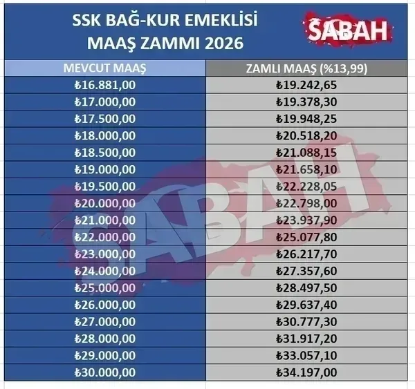 SSK ve Bağ-Kur emeklileri doğrudan 6 aylık enflasyon oranı kadar zam alırken, memur emeklileri için bu oran toplu sözleşme ile farklılık gösteriyor. Ancak gündemin en sıcak başlığı: 16.881 TL olan en düşük emekli maaşı ne kadar artacak? Son veri öncesi tahminler tablolarda kendini göstermeye başladı. İşte Ocak 2026 emekli maaşlarına dair maaş maaş hesaplama listesi.