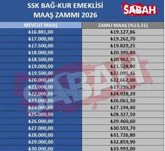 2026 Ocak ayında emekli maaşlarına yapılacak zam, milyonlarca hak sahibinin gündeminde ilk sırada yer alıyor. Kasım ayı enflasyon verileriyle birlikte SSK ve Bağ-Kur alığı alan vatandaşlar yılın ilk beş aylık zam oranları netleşti, ancak dikkatler yılın son iki ayına yöneldi. Zam hesaplamasında beşinci enflasyon oranı belli oldu. Aralık ayı TÜFE ile belirlenecek ve nihai maaş artışı kesinleşecek. Peki, SSK ve Bağ-Kur emekli maaşları ne kadar olacak, en düşük aylık hangi seviyeye yükselecek? İşte detaylı emekli zammı hesaplama
