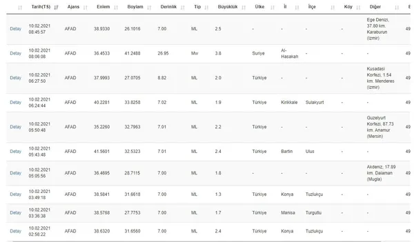 Son bir haftada, Sivas, Kayseri, İzmir ve dün akşam saatlerinde de Konya'da yaşanan sarsıntıların ardından deprem yeniden ülke gündeminde yerini aldı. Bu nedenle de AFAD ve Boğaziçi Üniversitesi Kandilli Rasathanesi son depremler listesi, vatandaşlar tarafından sık sık araştırılıyor. "En son nerede deprem oldu ve kaç şiddetinde" sorularının yanıtı, aşağıda yer almaktadır. İşte, AFAD ve Kandilli Rasathanesi son depremler listesi ve yaşanan sarsıntılara ilişkin veriler...