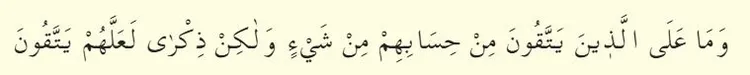 69.Ve ma alellezıne yettekune min hısabihim min şey'iv ve lakin zikra leallehüm yettekun