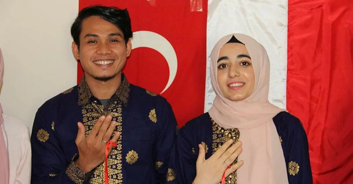 Bursa İnegöl'den bir eğitim programı kapsamında 2 haftalığına Endonezya'ya giden Edanur Yıldız (22), aynı programda yer alan Muhammad Mutawalli Asshidiqiy (27) ile tanıştı. Arkadaşlıkları ilerleyen ve gönlünü Endonezyalı gence kaptıran Yıldız, Mutawalli'nin evlenme teklifine "evet" dedi. Türk adetlerine göre bir nişan ve evlilik süreci isteyen Edanur Yıldız'ı ailesinden istemeye gelen Muhammad Mutawalli Asshidiqiy, uçak biletlerinin çok pahalı olması nedeniyle ailesini Türkiye'ye getiremedi. Endonezyalı gencin ailesi, kız isteme törenine internet üzerinden görüntülü bağlanarak katıldı.