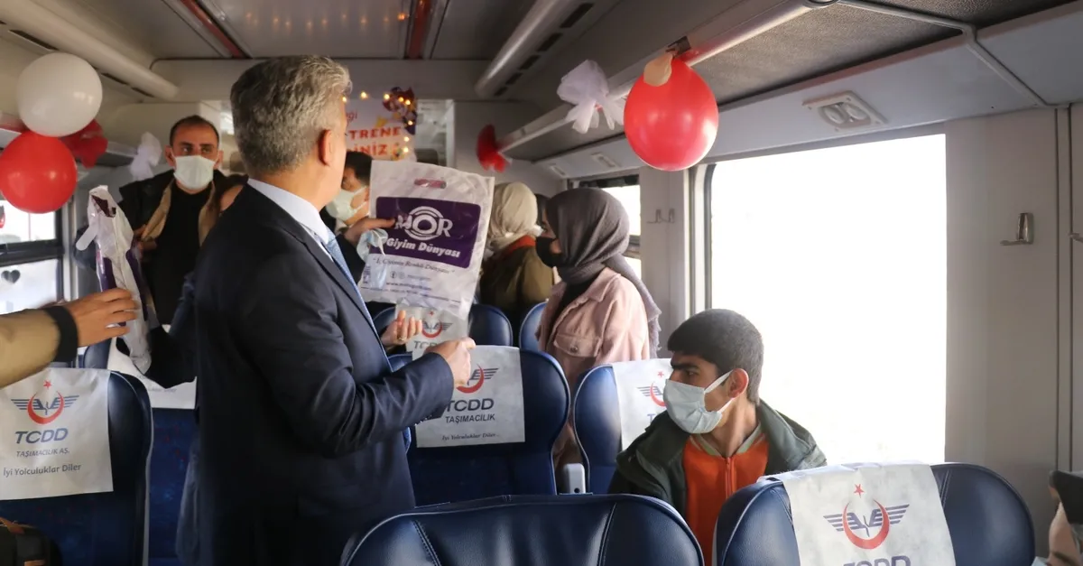 Erzincan'da 3 Aralık Dünya Engelliler Günü münasebetiyle "Engelsiz tren" projesi kapsamında kentteki 33 engelli mehter takımını yönetti tren gezisine katıldı. Erzincan Valiliğinin koordinasyonunda Gönüllü Gençler Derneğinin katkısıyla "Engelsiz Tren" projesi kapsamında kette bulunan 33 engelli yakınları ile birlikte trenle Kemah ve İliç ilçelerine eğlenceli yolculuk yapmak için Erzincan Tren Garında bir araya geldi.