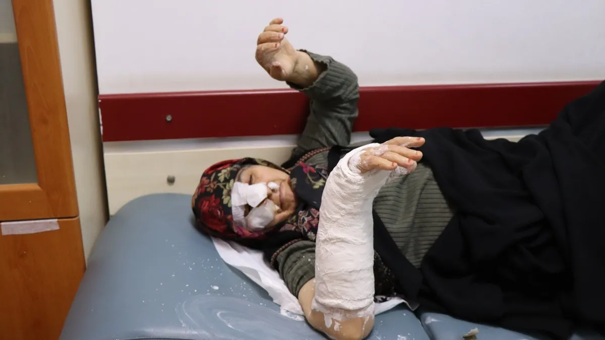 Erzurum'un Oltu ilçesinde, 4 sokak köpeğinin saldırısına uğrayan Hülya Altunok (53), kurtulmaya çalışırken 12 basamaklı merdivenlerden yuvarlandı. Çevredekiler tarafından kurtarılıp, hastaneye kaldırılan Altunok'un sağ kolu ile burnunun kırıldığı belirlendi.