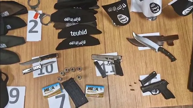 Şüphelilerin evlerinde yapılan aramalarda çok sayıda dijital materyal, örgütsel dokümanlar, 3 adet tabanca ve tabancalara ait fişekler, 3 bıçak, DEAŞ silahlı terör örgütünün 'sözde' bayrağı ve örgütün 'sözde' bayrağının basılı olduğu kalem ele geçirildi.