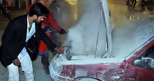 Hoşnudiye Mahallesi Kızılcıklı Mahmut Pehlivan Caddesi'nde, Şahin Yapanlar idaresindeki 26 PA 410 plakalı otomobilin motor kısmında henüz bilinmeyen bir nedenle yangın çıktı.